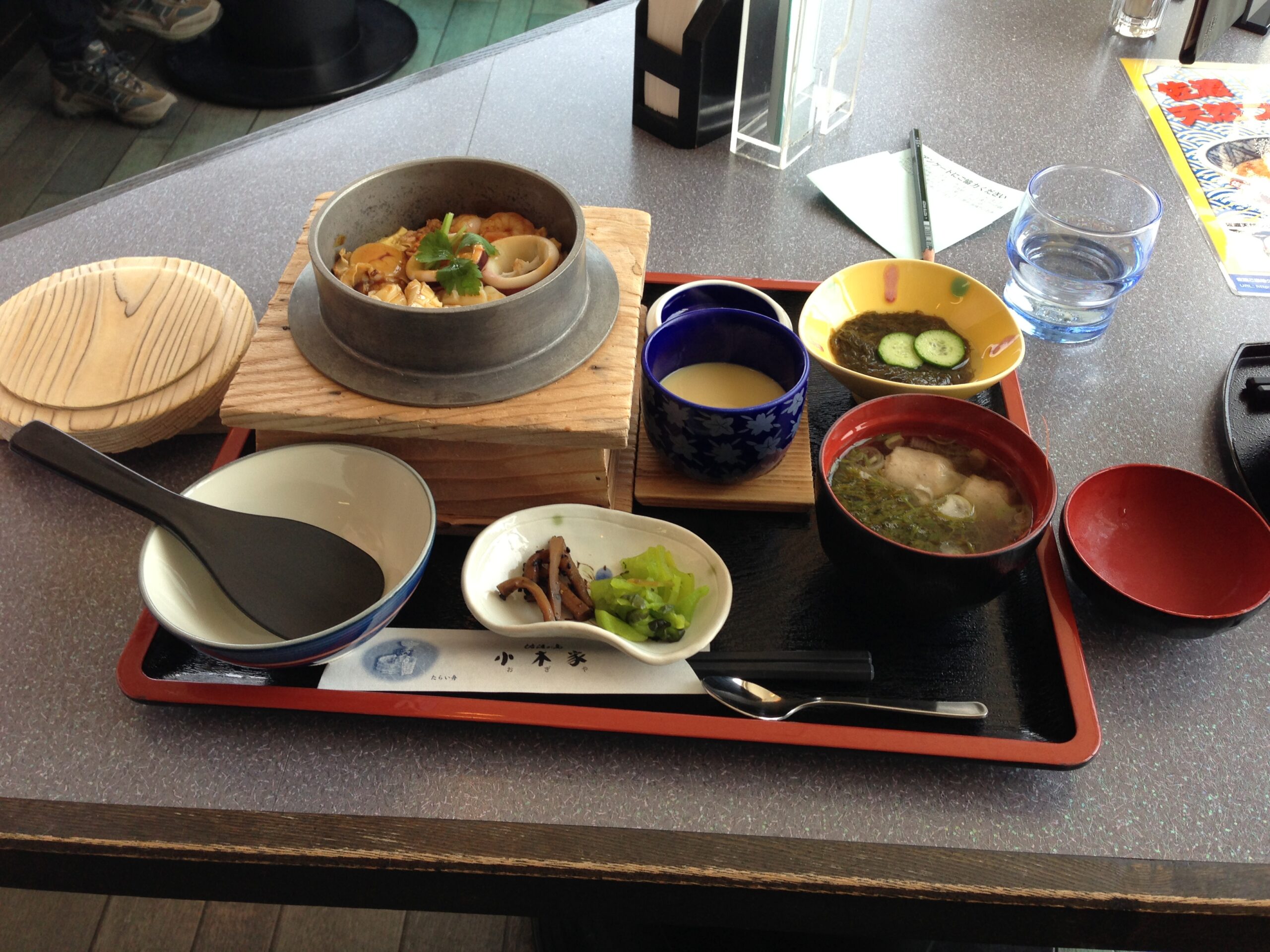 小木家さんは「佐渡汽船小木港ターミナル」直結の佐渡名産を取り扱っているお土産屋さんで、喫茶&レストランでは季節の素材と旬の魚介を使った釜飯や定食など幅広いメニューがあり、名物の「いか釜めし」は島民と観光客の両方から人気です。