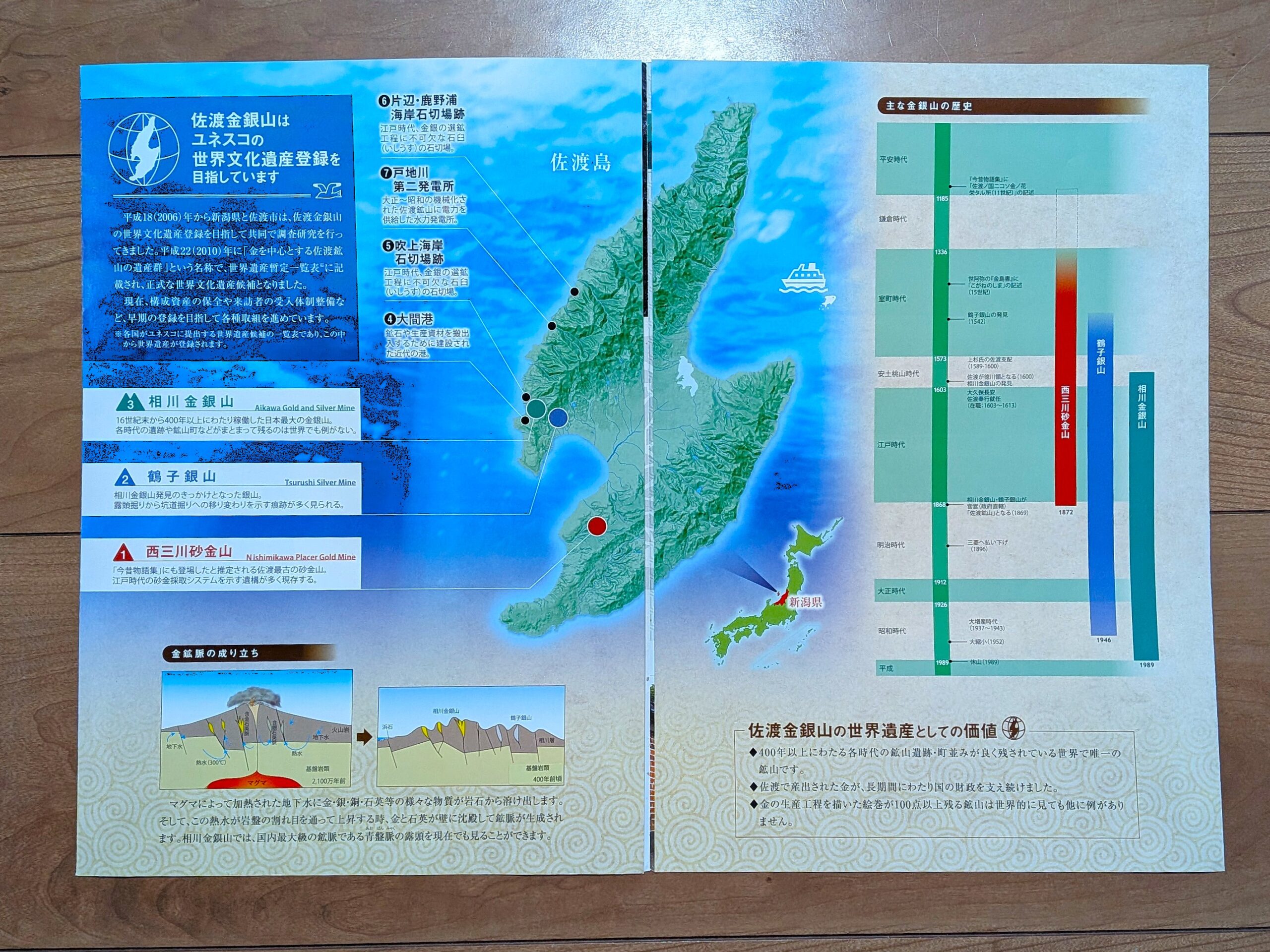 手元にある「金を中心とする佐渡鉱山の遺産群」のパンフレットの中から、興味深い所を厳選してご紹介します。