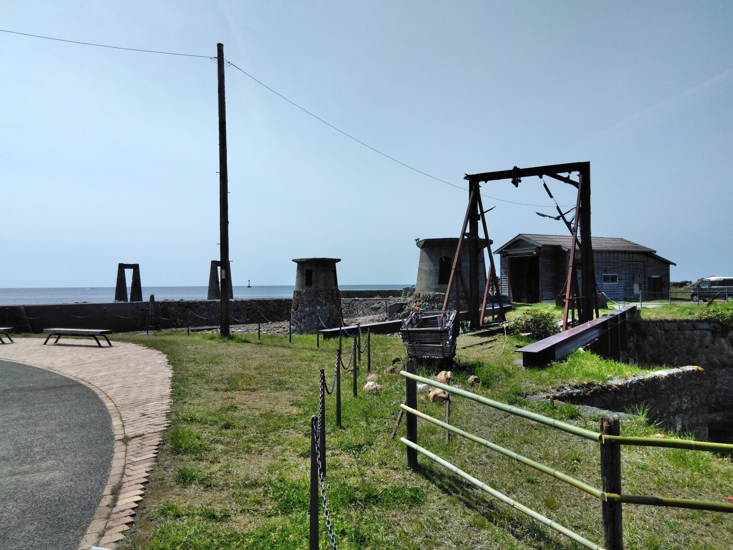 波音と風の音の中に佇む鉄骨の美しさ、そして周囲の石積みとの調和する景色がそこにはありました。