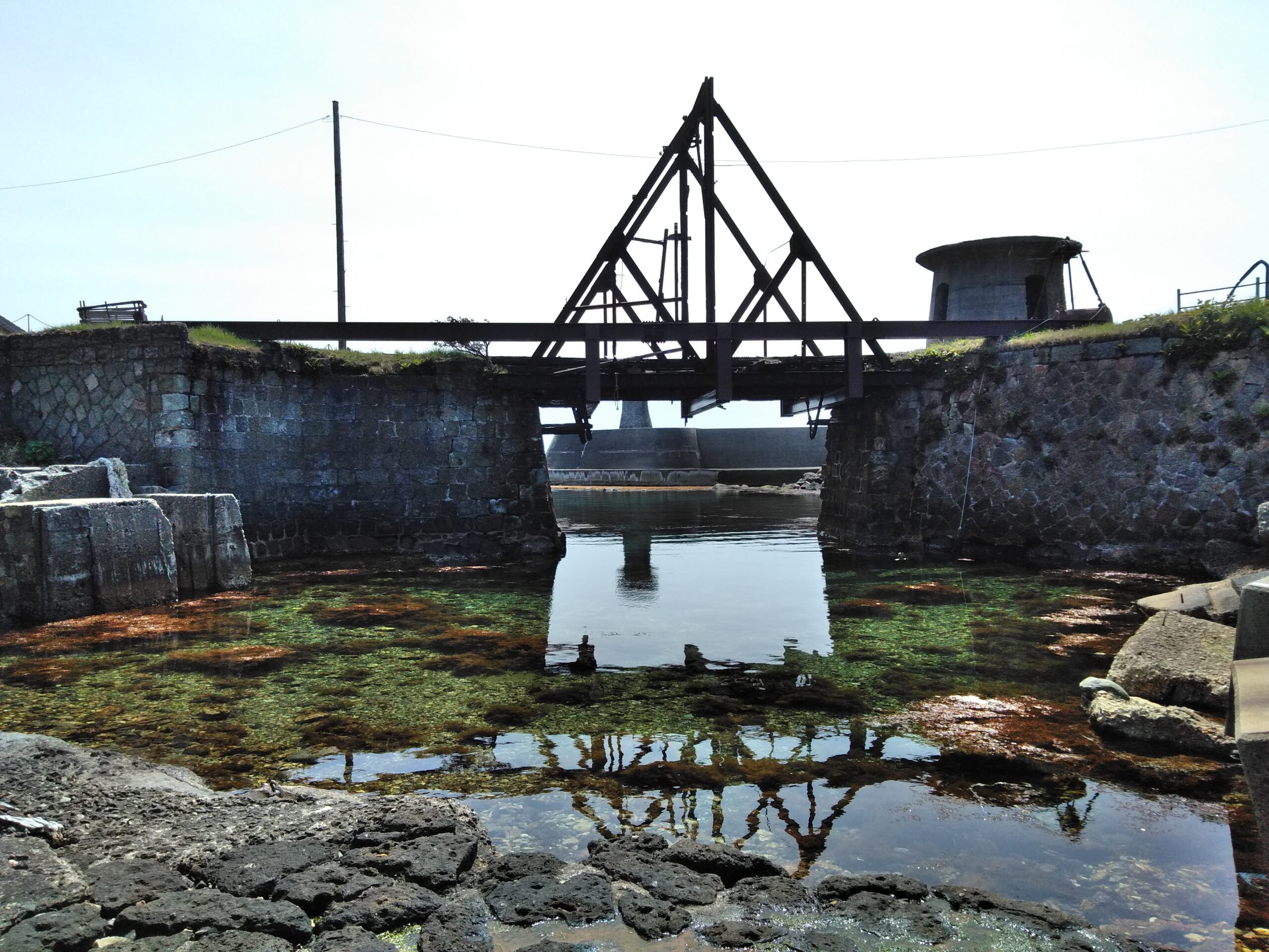 大間港(おおまこう)の象徴であった「トラス橋」が、暴風により崩落したのです。