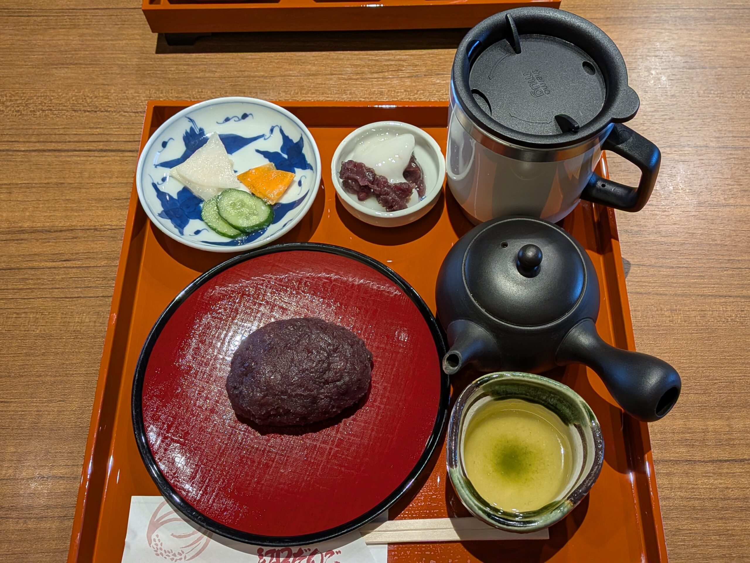 私は摂田屋おはぎセットで飲み物は温かい粕雪煎茶を選びました。