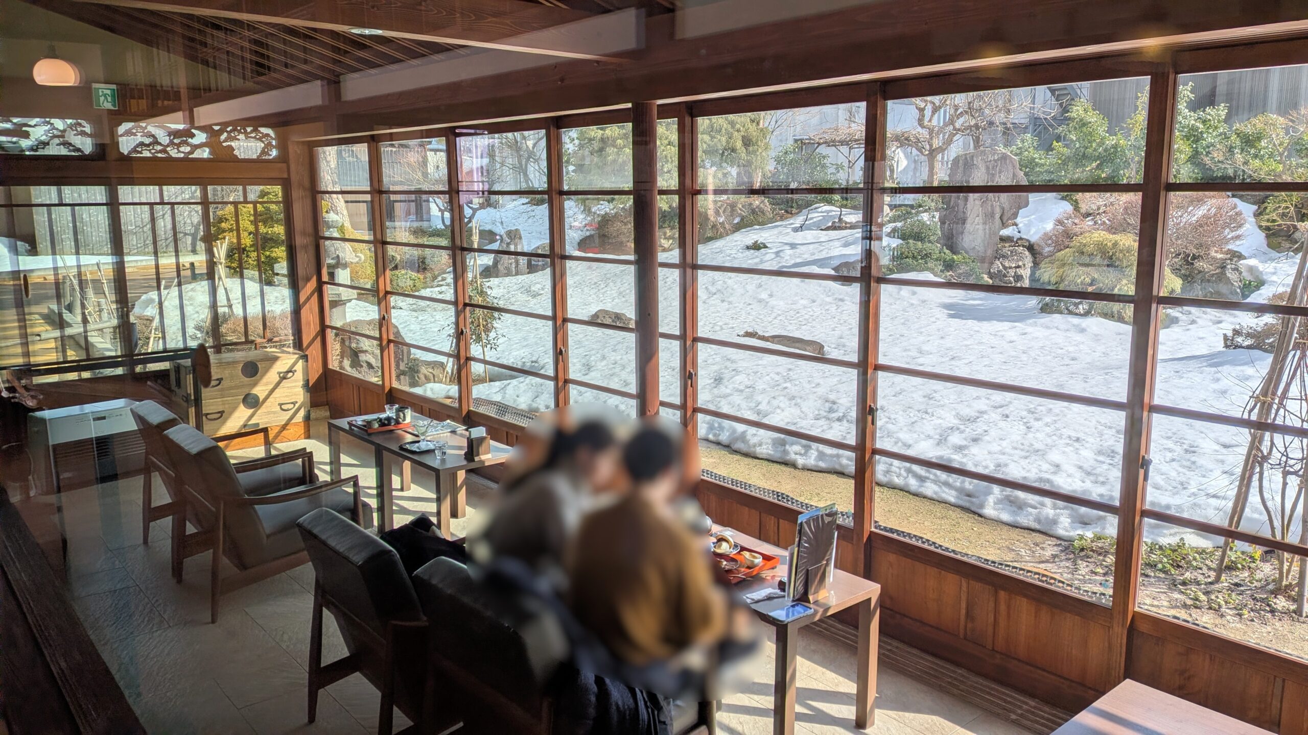 テラス席から見える庭部分はしっかりと残されていて、おそらく「越のむらさき」の創業家が愛した四季を感じられるこの庭の景色は、これからも多くの人の目を癒していくのでしょう。