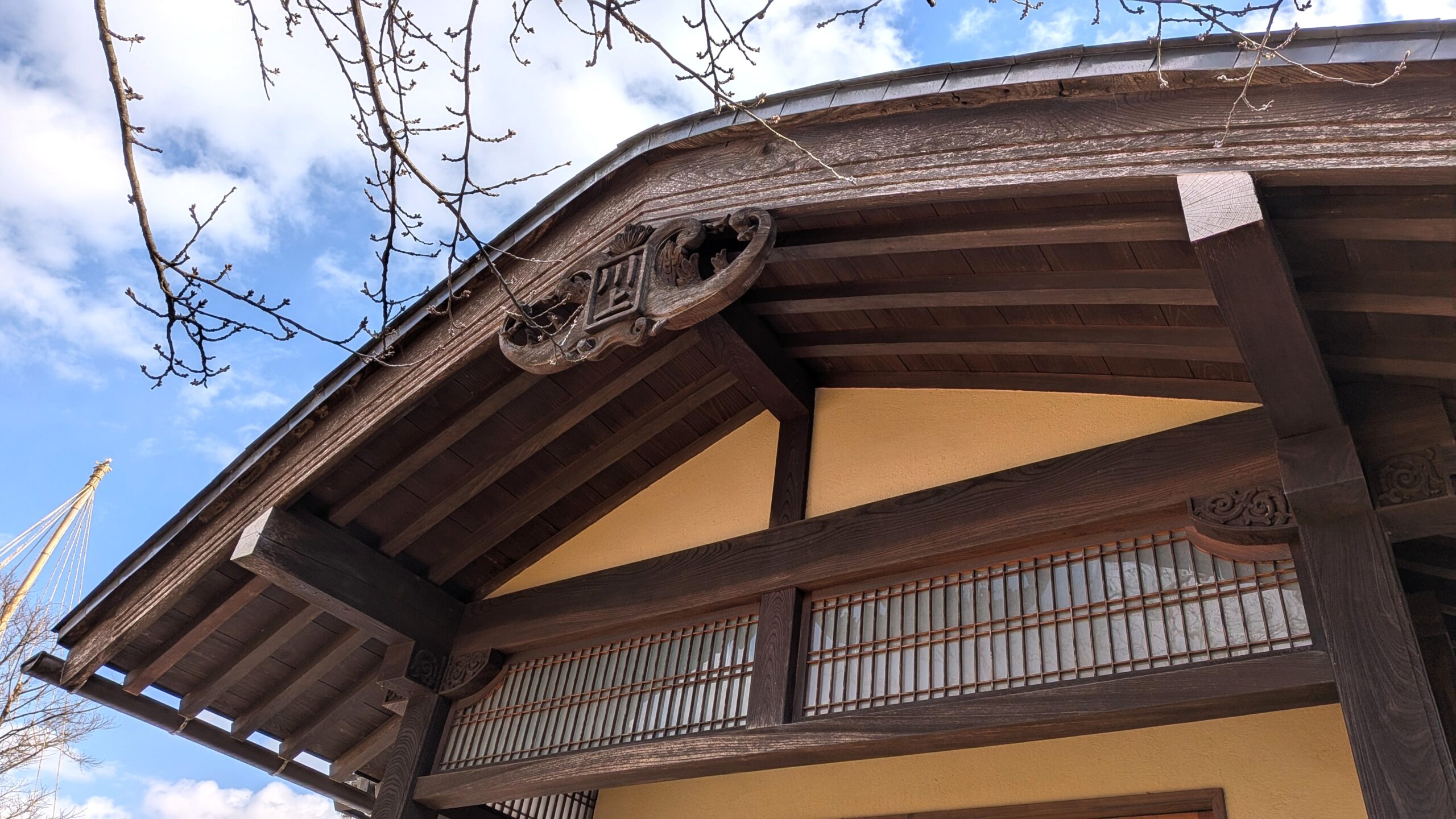 調べたらこれは「懸魚(けぎょ)」といい日本建築の屋根破風に取り付けられる装飾板で、火除けのまじないと建築的機能を兼ね備えていることがわかりました。